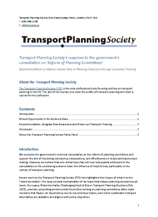 The Transport Planning Society (TPS) welcomes the Government’s proposed reforms to planning committees but highlights a critical omission: the influence of implicit bias—particularly the unconscious preference for car-based transport known as motornormality.
